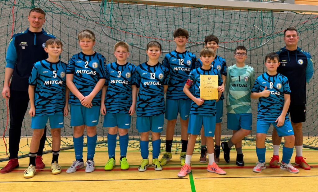 unsere Mannschaft von links: Co-Trainer Marius Baum, Jonas Adam, Lio Zetzsche, Malte Ritter, Stian Scoor, Milian Morgenstern, Connor Farkas, Benno Czastitz, Theo Moritz, Benito Theile, Trainer Matthias Moritz