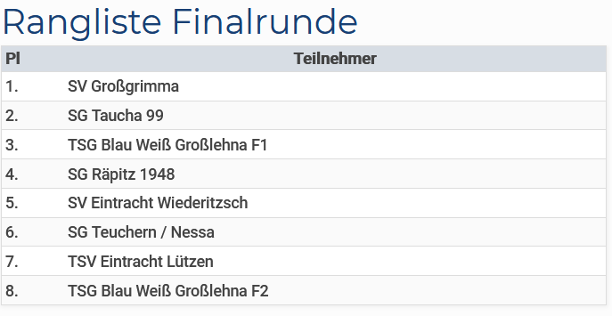 Rangliste Finalrunde: