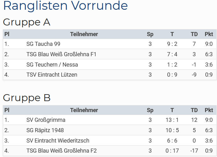 Rangliste Vorrunde: