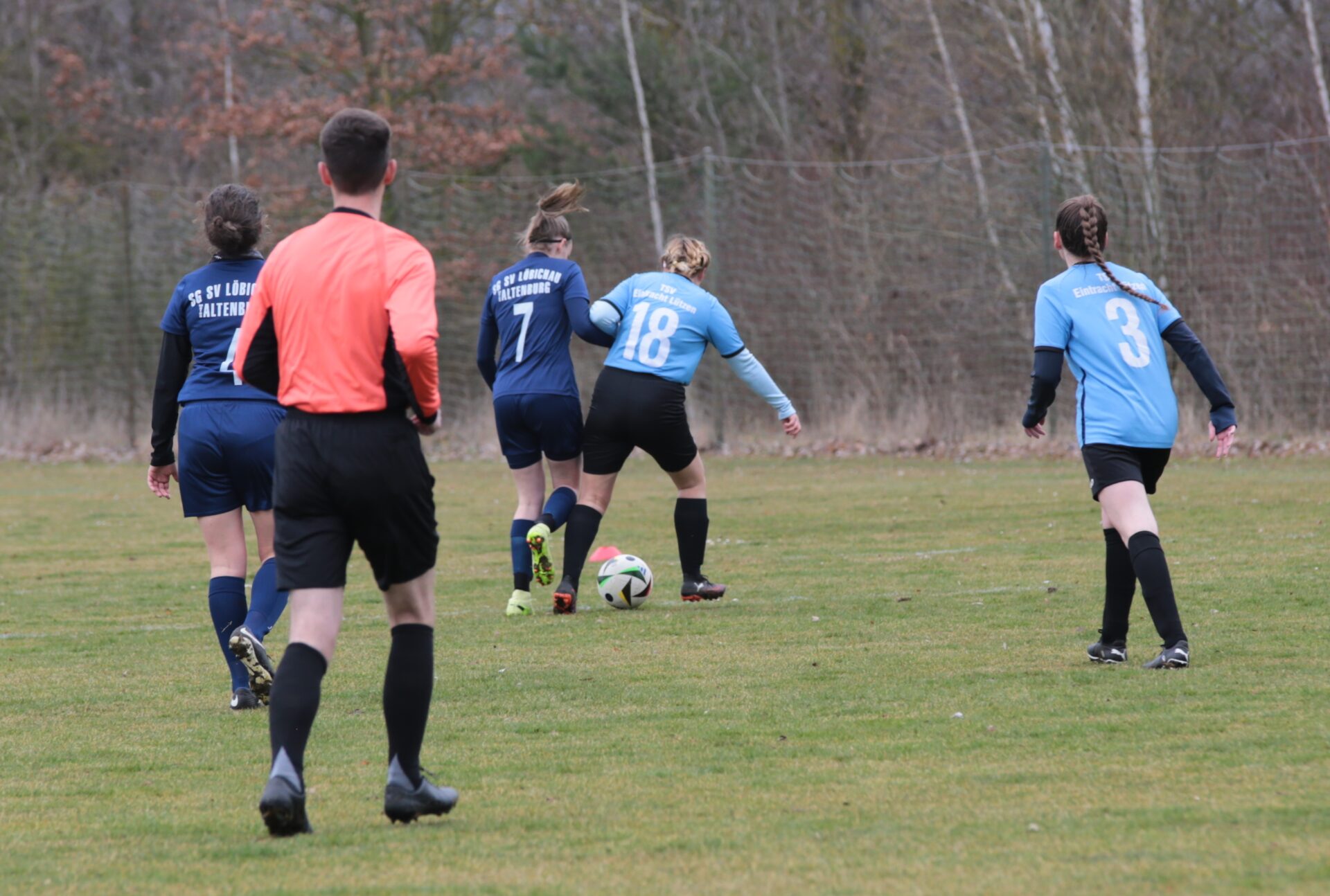 Die Partie begann mit personellen Wechseln auf beiden Seiten: Bereits in der 10. Minute musste beim TSV Eintracht Lützen Charlotte Oeser für Joane Heinold ins Spiel kommen. Trotz dieser frühen Unterbrechung im Spielfluss fanden die Lützerinnen immer besser in die Partie. In der 24. Minute belohnte sich das Team mit dem verdienten Führungstreffer: Sara Noreen Wandke traf zum umjubelten 0:1 und brachte den TSV Eintracht Lützen auf Kurs.